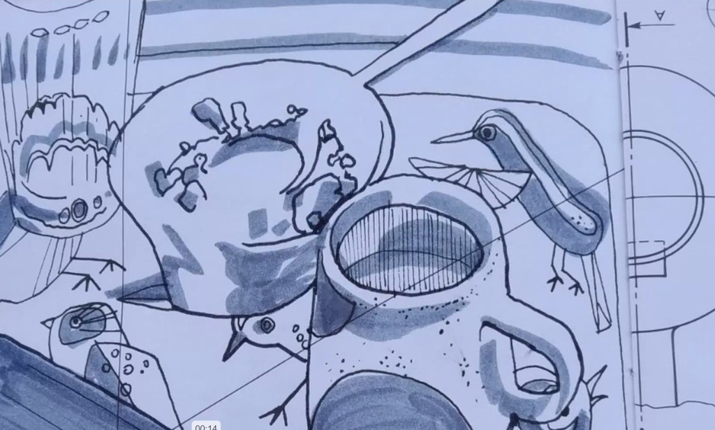 Coffee With Kathleen – Collaborative online project, drawing a breakfast still life every day with 5 other artists. Drawings became a short film. Soundtrack created from global kitchen recordings. WATCH FILM